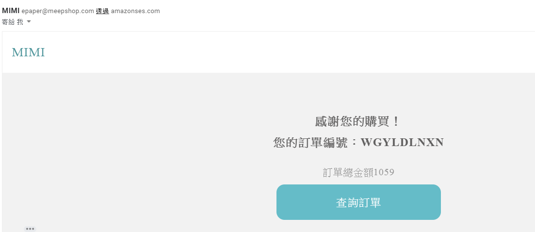 訂單建立完成後,該會員會收到訂購成功之系統信件,點擊「查詢訂單」