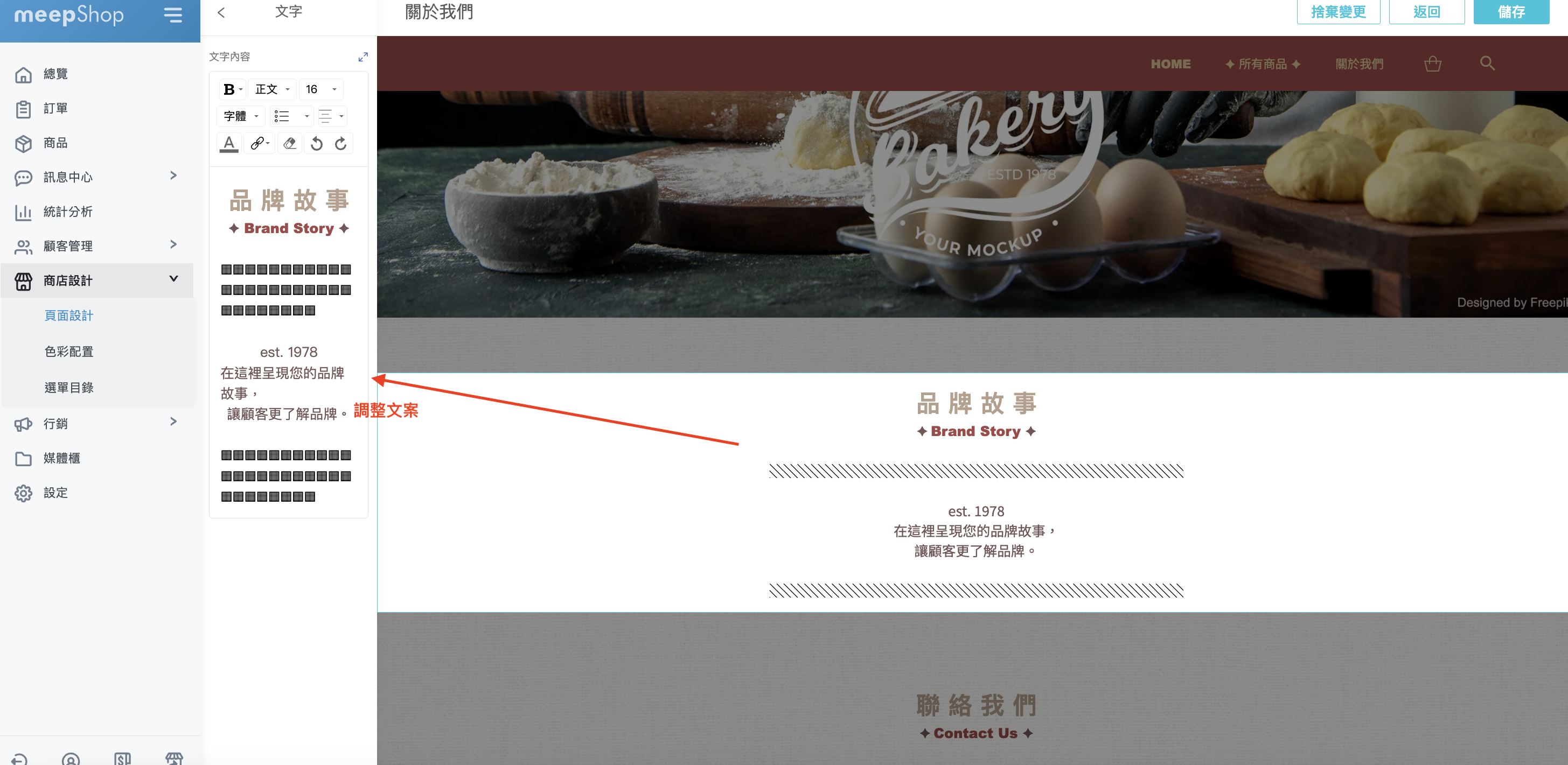 可直接點擊編輯,進入頁面後,選圖片文字/文字元件,調整您的圖片與文案,改成您商店的品牌故事喔